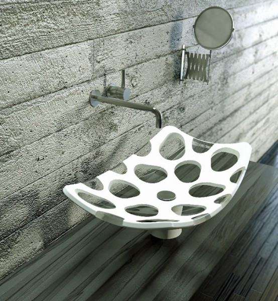 6. Mẫu bồn rửa này có tên gọi Foglio là sản phẩm của nhà thiết kế Ricardo Antonio. Sử dụng chất liệu corian, chiếc bồn rửa với hình dạng độc đáo này tạo cảm giác mát mẻ cho thiết kế phòng tắm hiện đại.