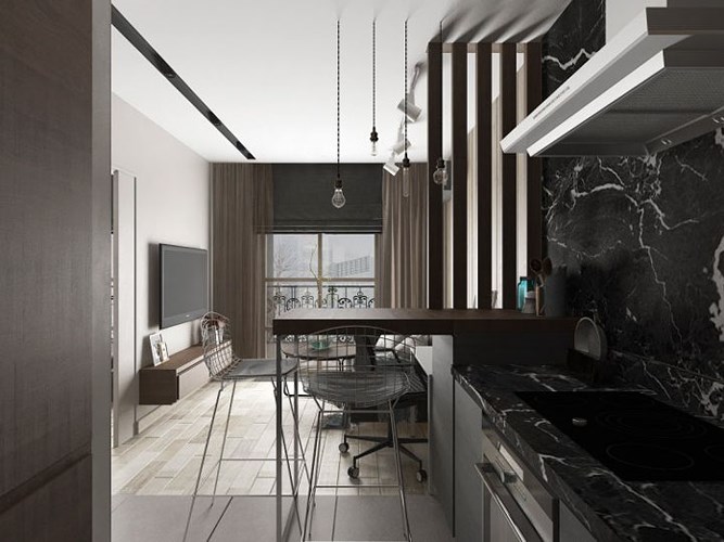 Căn hộ nhỏ màu xám được thiết kế hợp lý nên tạo ra được không gian sống vừa thoải mái vừa thân thiện