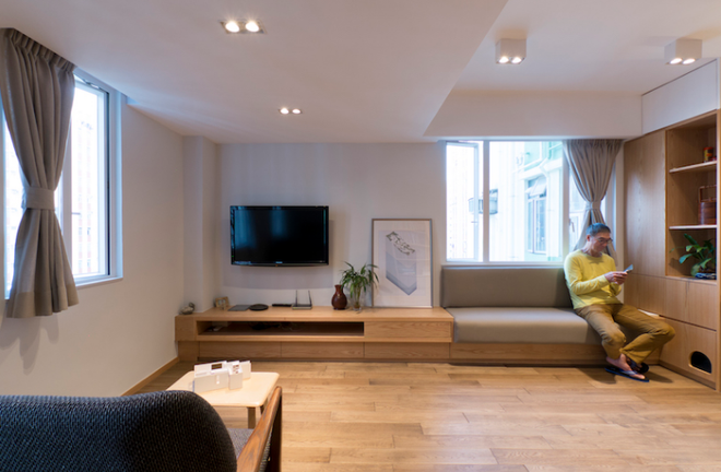 Hầu hết nội thất trong căn hộ đều được làm từ gỗ mang lại cảm giác thân thiện và ấm cúng