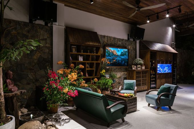 Không gian phòng khách của “nhà tiệc” được thiết kế mang đậm âm hưởng phương Đông
