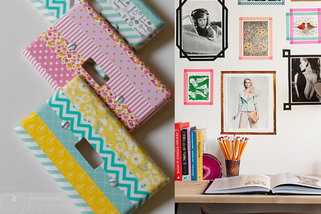 Dụng cụ bạn cần chuẩn bị cho công cuộc tân trang nhà cửa này là kéo và những cuộn băng dính nhiều màu, nhiều họa tiết. Lưu ý đến sự kết hợp các màu với nhau để tránh sự lòe loẹt.
