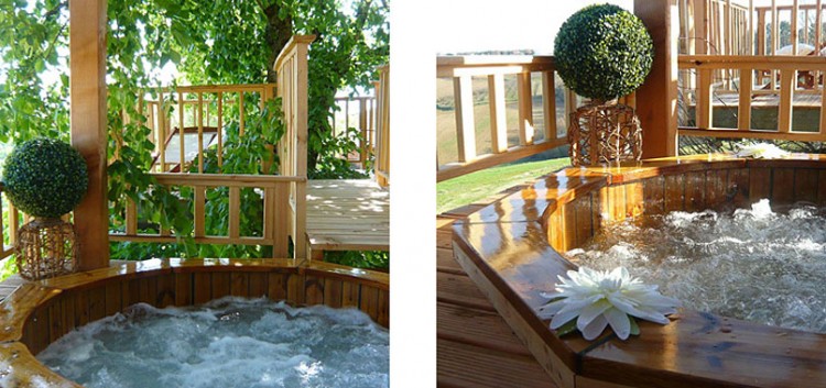 Bồn tắm nước nóng được thiết kế hình tròn khá ấn tượng