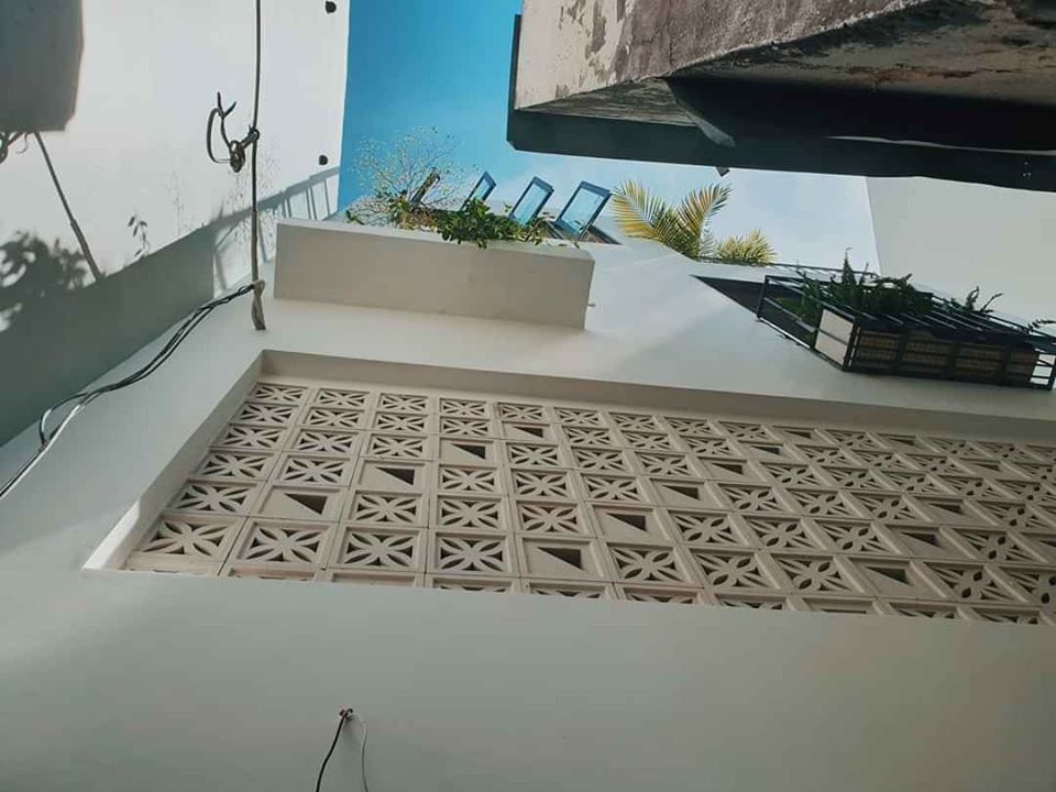 | Tầng 1 bao gồm phòng khách, bếp, nhà vệ sinh và cầu thang. Để các khu vực bên trong luôn thoáng sáng, anh Thanh Đường sử dụng gạch bông gió cho một phần tường, bên trong ốp kính và nẹp gỗ xung quanh. |