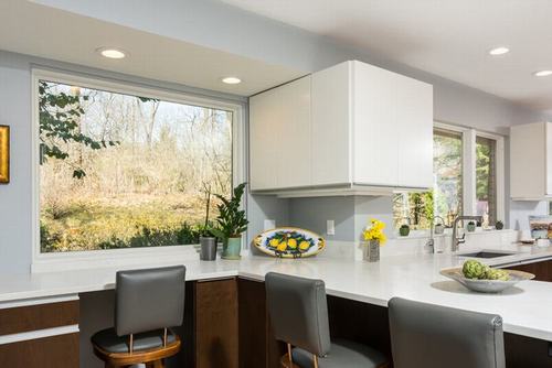 Phòng bếp có khung cửa sổ lớn nhìn ra bên ngoài