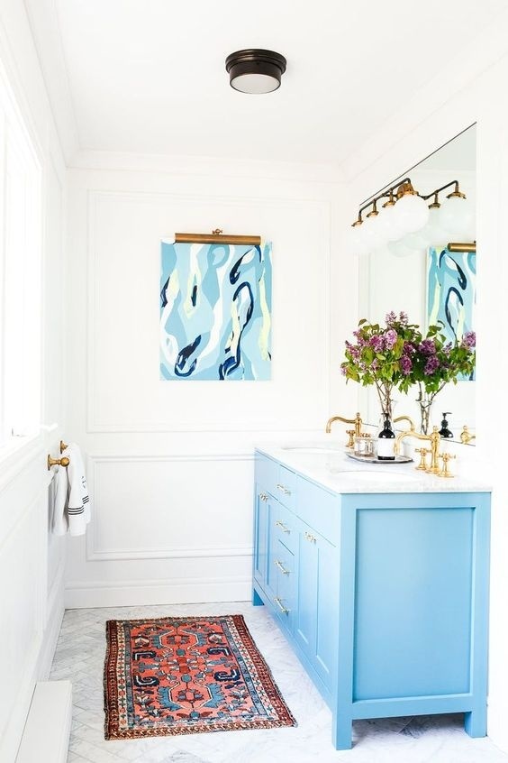 Bạn cũng có thể dùng màu xanh lơ cho toàn bộ hoặc chỉ một phần phòng tắm