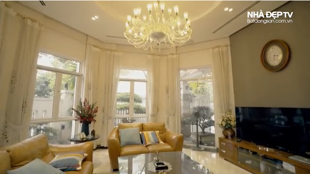 Mỗi không gian trong căn biệt thự được sử dụng một loại đèn khác nhau, rất đẹp và tinh tế. Ngoài các không gian sinh hoạt chính như phòng khách, phòng bếp, phòng ăn, phòng ngủ, ngôi nhà còn có cả phòng xông hơi khô, xông hơi ướt, phòng gym và phòng karaoke để mọi người tụ tập vào những ngày cuối tuần. Đặc biệt, bên trong biệt thự còn có rất nhiều món đồ nội thất ẩn chứa nhiều bất ngờ như chiếc tủ rượu nhỏ nơi phòng ăn, mang đậm dấu ấn phong cách của chủ nhà, vốn là người sống tại nước ngoài lâu năm; hay chiếc tủ lạnh body, thường được sử dụng nhiều ở nước ngoài…