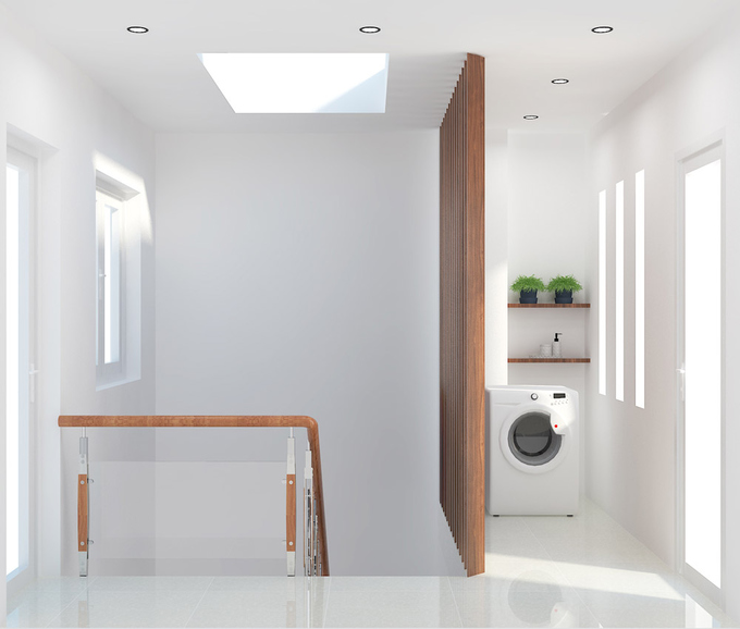 Thiết kế tầng thượng với phòng giặt nhỏ gọn gàng và tiện nghi